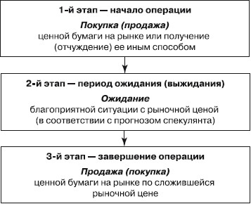 63. СПЕКУЛЯТИВНЫЕ ОПЕРАЦИИ С ЦЕННЫМИ БУМАГАМИ Спекулятивная операция с ценной бумагой – это операция, состоящая из чередующихся во времени актов покупки и продажи ценной бумаги одним и тем же участником рынка. В отличие от инвестирования, спекуляция есть способ получения дохода от ценной бумаги, связанный с ее окончательным отчуждением при продаже, а не с владением ею. Обычное определение спекулятивной операции на рынке ценных бумаг, или просто спекуляции, состоит в том, что это операция, имеющая своей целью получение дохода в форме положительной разницы в рыночных ценах, а точнее, положительной разницы между ценой продажи и ценой покупки ценной бумаги. По своей внешней форме спекулятивная операция есть покупка ценной бумаги с последующей ее продажей или, наоборот, продажа ценной бумаги с последующим ее обратным выкупом, которые приносят спекулятивный доход только тогда, когда цена продажи превышает цену покупки. Спекулятивная операция с ценной бумагой ничем не отличается от спекуляции с любым другим рыночным товаром. Спекуляция ценными бумагами выросла из спекуляции обычными товарами, которая имела и имеет место на товарном рынке, так как цена всегда отклоняется в ту или иную сторону от своей стоимостной основы под влиянием колебаний спроса и предложения, что собственно и является источником спекулятивного дохода на товарном рынке. Хотя спекулятивная операция и включает в качестве обязательных элементов как покупку, так и продажу ценной бумаги, ее нельзя определить, например, как разновидность инвестиционной операции (или наоборот), поскольку суть инвестиционной операции состоит не в покупке и последующей продаже ценной бумаги, а во владении ею в качестве источника капитала для ее владельца. Спекулятивная операция по своему механизму тоже всегда содержит разрыв во времени между покупкой и продажей, но владение ценной бумагой здесь выступает как технический момент операции, а не как ее сущность. Базовая модель спекулятивной операции имеет следующий вид. ![]() |