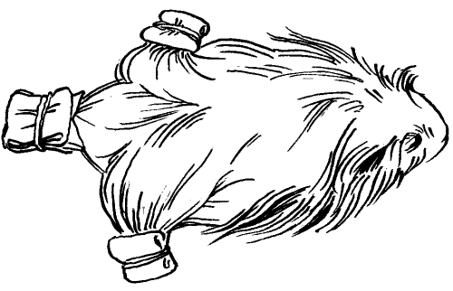 Чтобы накрутить шерсть на папильотку необходимо свернуть ее сначала вдоль, как будто захлопнуть длинные створки, а потом, чтобы удобно было надеть резинку, свернуть по ширине по сгибам. Получившийся своеобразный кармашек перевязать резинкой, чтобы папильотка не могла соскользнуть. Каждая папильотка должна плотно прилегать к телу свинки, а начинать накручивать шерсть нужно от самого корня волос. В результате папильотка будет тугой, и шерсть не станет выбиваться наружу или запутываться. Если папильотка надета правильно, животное будет вести себя спокойно и не попытается ее содрать. В противном случае волоски будут натянуты слишком сильно и свинке будет больно. ![]() Изготовление папильотки Некоторые заводчики вместо ткани используют листы специальной папильоточной бумаги. Это очень мягкая, но в то же время довольно прочная бумага, которую можно применять неоднократно. Вместо резинок многие используют разрезанный на полоски обычный воздушный шар. В зависимости от длины шерсти животного можно менять размер используемого листа и схему сгибания бумаги. ![]() Длина папильотки должна совпадать с длиной шерсти На выставку можно взять несколько запасных папильоток. Может случится так, что их нужно будет заменить. Особенности оценки некоторых пород свинок Подготовка к выставке некоторых пород морских свинок существенно отличается от обычной выставочной подготовки. Селф Большое значение при выставочной оценке селфов имеет правильное расположение животного. Важно, чтобы задние лапы свинки располагались строго под туловищем, передние лапы максимально поддерживали плечи, подчеркивая их размер и плавный изгиб. Голова должна быть плавным продолжением тела, высоко поднятая голова считается недостатком. При этом в районе шеи (со спины) должен просматриваться небольшой горб. Загнутые кончики ушей и неокрашенная кайма по краю очень часто являются наследственными признаками и считаются при оценке недостатком. Предпочтение отдается животным с большими сильно опущенными ушами, расположенными строго на одном уровне. Высокую оценку никогда не получит животное с толстым телом, по форме напоминающим грушу. Высоко ценятся свинки с кирпичеобразным телом. Среди селфов-чемпионом очень много животных с однотонным сплошным окрасом всего тела. Не должно быть ни пятен, ни «перьев», отличных по окрасу от основного, включая окрас подшерстка. Совершенно недопустимо ослабление окраса на передних лапах и вокруг глаз. Чрезмерный груминг нарушает оттенок окраса и является недостатком. Также минусом является взъерошенная шерсть или даже небольшая ее волнистость. Все перечисленное оценивается судьями визуально. Далее наступает второй этап осмотра выставочного животного. Эксперты берут свинку на руки. Таким образом можно получить представление о ее кондиции и качестве шерстного покрова. Тело свинки должно быть сильным, твердым и упругим. Мягкое и рыхлое туловище является существенным недостатком. Шерсть селфа должна быть бархатистой и мягкой. На заключительной стадии оценки эксперт осматривает живот и подшерсток свинки. У многих животных встречаются необычно или странно окрашенные волосы (особенно на животе и участках вокруг анального отверстия). Некоторые эксперты не считают это недостатком. Минусом является плохой окрас подшерстка на бо