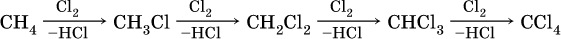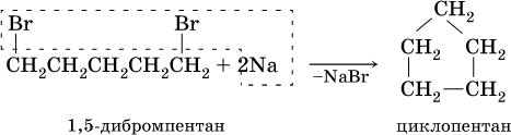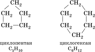 9. Углеводороды. Гомология и изомерия. Химические свойства и способы получения 9.1. Алканы. Циклоалканы Алканы (парафины) – это соединения углерода с водородом, в молекулах которых атомы углерода соединены между собой одинарной связью (предельные углеводороды). Общая формула гомологического ряда алканов СnН2n+2. Радикал, получающийся при отрыве одного атома водорода от молекулы предельного углеводорода, называется алкилож, общая формула алкилов СnН2n+1. Формулы и названия первых шести алканов (С1—С6) и отвечающих им радикалов: ![]() Для радикала С5Н11 использование названия амил не рекомендуется. Для составления названий алканов с разветвленной цепью, например ![]() выбирают самую длинную углеродную цепь (в примере – 5 атомов) и получают основу названия (5 – пентан). Нумеруют цепь (от 1 до 5) так, чтобы заместители (—СН3) получили наименьшие номера (2 и 3). В названии арабскими цифрами указывают положение заместителей, а приставками ди – 2, три – 3, тетра – 4 и т. д. – число одинаковых заместителей. Таким образом, в нашем примере алкан должен быть назван 2,3-диметилпентан. При наличии разных заместителей их названия расставляют по алфавиту, т. е., например, сначала метил, а затем этил. Для некоторых разветвленных предельных углеводородов используются, наравне с систематическими, традиционные названия, например, для алканов состава С4Н10 и С5Н12 с формулами: ![]() Такие же названия используются для разветвленных радикалов: ![]() При обычных условиях первые алканы – метан, этан, пропан и бутан (С1—С4) – представляют собой газы без цвета и запаха, малорастворимые в воде. Последующие гомологи (С5—C15) – жидкости (при 20 °C), высшие гомологи (C16 и выше) – твердые вещества. В алканах атомные орбитали углерода имеют sр3-гибридизацию; четыре электронных облака атома углерода направлены в вершины тетраэдра под углами 109,5°. Ковалентные связи, образуемые каждым атомом углерода, в алканах малополярны. Поэтому алканы – сравнительно инертные вещества, вступают только в реакции замещения, протекающие с симметричным (радикальным) разрывом связей С – Н. Эти реакции обычно идут в жестких условиях (высокая температура, освещение). В результате становится возможным замещение водорода на галоген (CI, Br) и нитрогруппу (NO2), например, при обработке метана хлором: ![]() Вторая и последующие стадии реакции протекают легче, чем первая, из-за смещения электронной плотности к атому хлора: ![]() и увеличения подвижности остающихся атомов водорода. Названия продуктов: СН3Cl – хлорметан, СН2Cl2 – дихлорметан, СНCl3 – трихлорметан (хлороформ), СCl4 – тетрахлорметан (тетрахлорид углерода). В тех алканах, где кроме первичных есть также вторичные и третичные атомы углерода, замещение обычно протекает с образованием смеси однозамещенных продуктов (т. е. в каждой молекуле замещается один атом водорода), например: ![]() Циклоалканы – предельные углеводороды циклического строения, общая формула гомологического ряда СnH2n (п ![]() При комнатной температуре С5Н10 и С6Н12 – бесцветные жидкости, малорастворимые в воде. Химические свойства циклоалканов подобны свойствам алканов, например: ![]() Получение: источниками алканов и циклоалканов в промышленности служат нефть, природный газ, каменный уголь. В лаборатории применяют такие способы синтеза алканов: 1) реакция Вюрца – действие натрия на галогенпроизводные углеводор