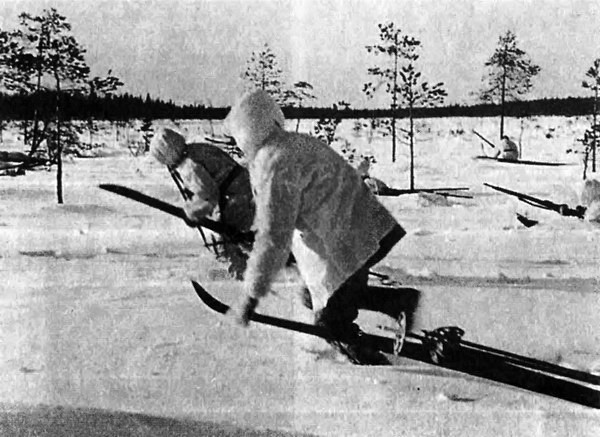 Используя скорострельные автоматы системы "Суоми", внезапно появлявшиеся партизаны-лыжники поливали огнём скопления русских и исчезали в снежной белизне