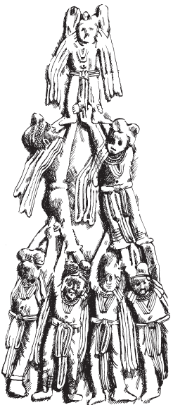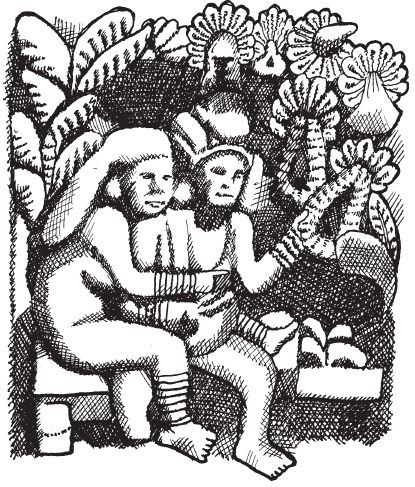 Глава 3 Повседневная жизнь В деревне В Древней Индии, как и сегодня, большая часть населения проживала в сельской местности. Это может показаться странным, но сами деревни не слишком изменились с тех времен. Однако сильно изменилась окружающая среда, в которой они расположены. В древности значительную часть территории Индии покрывали очень густые и труднопроходимые джунгли. А сегодня эти джунгли сильно поредели, потому что их вырубали, чтобы освободить землю под посевы, а также для заготовки дров. Типичная деревня того времени была обнесена прямоугольной стеной или частоколом для защиты от мародеров и грабителей, с одной стороны, а с другой – от диких зверей: тигров, львов и слонов, которые во множестве водились в близлежащих лесах. В стене было проделано четверо больших ворот и четверо вспомогательных – размером поменьше. Большие запирались при помощи большой деревянной решетки, которая закрывала проход через ворота. Через этот проход вечером загонялся деревенский скот, возвращавшийся с выпаса. ![]() Женщины с детьми перед деревенской хижиной Здания располагались в правильном геометрическом порядке; хотя если деревня была маленькой, то все дома группировались вокруг пруда или водоема, в тени деревьев. Они различались размером и формой, в зависимости от достатка их владельца, но в основном это были одноэтажные домики с полом из хорошо уплотненного грунта, стены которых были выложены из затвердевшей грязи и покрыты снаружи смесью из извести, грунта и коровьего навоза (который, как считалось, обладает очищающими свойствами). В доме, как правило, было только одно небольшое окно, закрытое деревянной решеткой. Крышу делали из листьев и тростника, иногда покрывали своего рода циновкой, сплетенной из длинной травы, которая крепилась к бамбуковой основе. С крыши порой ниспадали длинные вьющиеся растения, закрывающие стены. Внутри помещение разделено было на комнаты бамбуковыми занавесками, прикрепленными к крыше. Обычно дом состоял из спальни, которая выходила на север, кладовой, а также комнаты для приема посетителей. ![]() Стол из ротанга в форме песочных часов ![]() Глиняный кувшин для воды в форме перевернутого кубка Обстановка была самой простой. Находившаяся в спальне кровать представляла собой деревянную или бамбуковую основу на четырех ножках, внутри которой находилась решетка, сплетенная из веревок и травы, накрытая либо циновкой, либо тонким одеялом. В комнате не было ни стульев, ни сидений, обычно все сидели на полу. Стол заменяло плетеное, выполненное из тростника изделие, напоминавшее по форме песочные часы. В кухне и кладовой в глиняных и медных горшках и кувшинах хранились запасы. Самыми важными и наиболее часто встречающимися были масло, перец, специи и мед. Большие кувшины ставили друг на дружку так, чтобы верхний служил крышкой нижнему. Кувшины и горшки поменьше связывали вместе и подвешивали к крыше. Эта посуда использовалась только для хранения продуктов и готовки, но не для еды. В качестве тарелок использовали большие листья, поскольку считалось, что есть с тарелки можно только один раз. Поэтому, если получалось так, что кто-то ел из глиняной посуды, сразу после этого ее немедленно выбрасывали. Согласно предписаниям Священного Закона, посуду для еды можно употреблять лишь один раз, и этому правилу старались стро