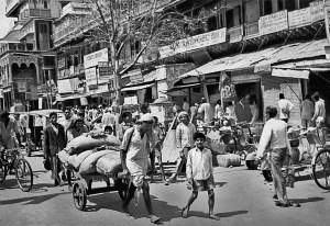 4. ВЫ ПРИЕХАЛИ В ИНДИЙСКИЙ ГОРОД Вы приезжаете в любой большой индийский город – пусть это будет Дели, – выходите из поезда и, если вы человек новый и непривычный, сразу теряетесь и не понимаете, что ж дальше-то делать. Ваши чемоданы подхватывает кто-то с номерным знаком на ремне – ну, думаете, может быть, и впрямь носильщик, – нагромождает их себе на голову, будь их хоть десять, и убегает. Вы сразу теряете его из виду. Даже не пытайтесь его разыскать, это невозможно. Он сам вас будет встречать у стоянки такси, захватив уже для вас машину, и радостно улыбнется, когда вы наконец его там обнаружите. Индийский носильщик на вокзале А вокруг на перроне кипит толпа, огромная, яркая, как движущаяся клумба или цветущий сад. Пестро, разноцветно, разнообразно. Мужчины в белом, цветастом, клетчатом, полосатом и опять в белом. Их головы или увенчаны тюрбанами, или – что чаще – обнажены, и тогда их черные волосы, смазанные особым маслом, блестят, как антрацит. А женщины одеты в сари таких оттенков, которым и названий не подберешь, – желтых, розово-лимонных, палевых, ало-синих, зелено-оранжевых. И повсюду, как тюльпаны в весенней степи, – носильщики в больших красных тюрбанах. Кто стоит, кто бежит, кто шествует. Говорят и кричат на всех языках Индии и, конечно, на английском. Теряют и снова находят свои купе, багаж, носильщиков, детей и друг друга. Смеются, возмущаются, машут руками, торгуются с носильщиками. Все суматошно, пестро, оживленно, весело. Повсюду кричат продавцы прохладительных напитков, фруктов и сладостей, гудят паровозы, и вы, растерявшись от всей этой суеты и шума, двигаетесь куда-то, как во сне, пока толпа не выносит вас к уже упомянутой стоянке такси. Велосипеды выдерживают любой груз И тут вы погружаетесь в поток уличного транспорта, при взгляде на который вас в первую очередь поражают велосипеды. Это что-то неописуемое – индийские велосипеды! Кто бы мог подумать, что велосипеду свойственны такие особенности! Я несколько раз пристально всматривалась в индийские велосипеды и решительно не видела ничего такого, чем бы они внешне отличались от других велосипедов мира. Все то же самое. Но ни один другой велосипед не согласился бы везти на себе то, что возит индийский. В Индии очень часто можно увидеть, например, трех взрослых людей на одном велосипеде. Трое – это почти правило. А бывает и пять и шесть. Едут семьями или родственными группами, причем техника размещения всех на одной машине продумана до тонкостей. Обычно отец сидит на седле. Перед ним на раме помещается один или два члена семьи. К рулю спереди приделана полукруглая корзинка, в которой сидит, поджав ножки, один из младших детей. На багажник, как на стул, садится мать, держа в руках самого маленького. И так семья выезжает в гости, по делам и даже на загородную прогулку. Поражает выносливость и сила того, кто везет остальных. Ведь такой груз не легко перевозить, нажимая на педали иногда в течение двух-трех часов. Работают, работают тонкие темные ноги, работают не переставая. Пирамиды людей передвигаются на двух колесах во всех направлениях под палящим солнцем. Неру как-то сказал, что Индия сейчас переживает век велосипедов. Это удивительно верно. Все городские улицы, все шоссе буквально заполнены велосипедистами. В Пенджабе (Панджабе) молодые сикхи сушат свои длинные волосы после мытья, раз