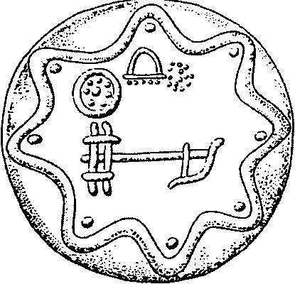 Вспомните воеводу Свенельда, не о нём ли речь? Ведь это он выдал Светослава печенегам, зная, что у того нет законных наследников и потому надеясь после его смерти посадить на золотой стол в Киеве своего старшего сына Люта вместо слабохарактерного Ярополка, который на время отсутствия великого князя выполнял в Киеве всего лишь обязанности его посадника и, возможно, был таким же варягом, как Лют. Но престарелый интриган Свенельд тешился надеждами напрасно. В самом низу под двухвильиком – половина буквы «Л»: ложная любовь. Верхушка этой половинки косо срезана и помещена под знаком варяга. Это порождение ложной любви, с которым, как показано на печати, и будут связаны все потрясения на Руси в течение одиннадцати юпитерных лет. Она – первопричина всех бед. Но участь ее печальна. Сына у нее рано отберут, и тот о ней никогда не вспомнит. Женщина закончит свою жизнь в полном одиночестве, как оно потом и было в действительности. Ни в Новгороде, ни затем на Рюгене Малка-Малуша не появлялась. Куда её упрятал братец Добран, взявший под личную опеку драгоценного племянника, неизвестно. Конечно, знаки и письмена на печати Светослава я расшифровал очень бегло. Она охватывает период примерно в 170 лет и несет в себе столько информации, что заслуживает специального исследования. Но сейчас у нас другая задача. Впрочем, я не ответил еще на один вопрос, который у читателя здесь наверняка возникнет. Почему Светослав, если он предвидел свою гибель и заранее знал, что предаст его если не Свенельд, то кто-то из других приближенных варягов, не предпринял никаких мер для своей безопасности? Скорее всего он подозревал все же Све- нельда. Вспомните те три летописные фразы: «И сказал ему воевода отца его Свенельд: «Обойди, княже, [их] на конях, ибо стоят печенеги в порогах». Но не послушал его он и двинулся на лодках». Потому-то и не послушал Светослав старого варяга, что не доверял ему. И, видимо, отношения между ними были уже такие, что Свенельд на то и рассчитывал и заведомо придумал способ, как задержать Светослава в Белобережье. Лодки со съестными припасами, которые следовали на некотором расстоянии позади княжеской дружины, куда-то бесследно исчезли. А вели их люди Свенельда, из чего нетрудно заключить, что «исчезли» они не иначе, как по приказу Свенельда же. Из-за этого Светослав и вынужден был остановиться на зимовку в Белобережье. Ну, а дальше читателю известно... Обо всех этих перипетиях умалчивают все наши христианские летописи, но о них достаточно подробно говорится в летописях «языческих», откуда, кстати, без указания источника взят и этот стихотворный отрывок: Уже нам некамо ся дети – волею и неволею стати противу. Да не посрамим земле Руськые, но лязем костию ту! Мъртви бо срама не имам; аще ли побегнем, то срам имам. И не имам убежати, но станем крепъко! Аз же пред вами поиду; аще моя глава ляжеть - то промыслите о собе». И реша вои: «Идеже глава твоя, ту и главы наша съложим! Обычно в нашей исторической литературе это подаётся как обращение Светослава к своим дружинникам перед битвой с многократно превосходящими силами византийцев. Так оно и есть, но это лишь незначительная часть того, что безымянный летописец-»язычник» (сравните язык этого стихотворения с языком автора-христианина Слова о полку Игореве, и вы увидите, какая между ними разница) вложил в уста Све
