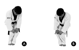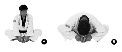 ПОДГОТОВИТЕЛЬНЫЕ УПРАЖНЕНИЯ (ЧУНБИ УНДОН) Цель подготовительных упражнений, или разминки – подготовить мышцы к предстоящей работе и повысить уровень функционирования основных систем организма. Разминка состоит из двух частей: общей и специальной. Общая часть разминки повышает функциональные возможности организма в целом. В общую часть разминки рекомендуется включать медленный бег, прыжки, подвижные игры, общеразвивающие упражнения. Главное требование, чтобы эти упражнения не требовали большого напряжения и хорошо разогревали тело. Специальная часть разминки направлена на подготовку к активной деятельности тех групп мышц, которые будут задействованы в тренировке. Упражнения, выполняемые в ходе специальной разминки, повышают работоспособность мыщц, что позволяет мышцам перенести без повреждений большие нагрузки и выполнять значительные по усилию и скорости сокращения. Упражнения, включаемые в специальную часть разминки, должны соответствовать основным тренировочным упражнениям не столько по координации их выполнения, сколько по интенсивности нервно-мышечных напряжений, что особенно важно для скоростно-силовых упражнений. Специальная часть разминки, совпадающая по интенсивности нервно-мышечных напряжений с основными тренировочными упражнениями, значительно сокращает период врабатывания организма в рабочий режим и является эффективным средством, способствующим успешному выполнению упражнений скоростно-силовой направленности. Эффективно проведенная разминка повышает температуру тела на несколько градусов и вызывает благоприятные для активной физической деятельности физиологические изменения в организме. Эти изменения характеризуются повышением пластичности мышц, и как следствие, улучшением их способности к расслаблению и сокращению; увеличением эластичности сухожилий и связок; ускорением кровоснабжения мыщц и повышением насыщения их кислородом. Немаловажным фактором разминки является и предупреждение травматизма во время тренировки, ведь мы занимаемся с целью укрепить здоровье и приобрести навыки самообороны, а не нанести ущерб своему организму. Практика подтверждает, что одной из основных причин травматизма при занятиях боевыми искусствами является неправильно проведенная разминка или отказ от нее. В традиционной практике боевых искусств комплекс упражнений разминки составляют, руководствуясь одним из следующих принципов: от крупных мышечных групп – к мелким, или от мышц верхней части тела – к нижней. Приведенные в этой главе упражнения расположены по принципу сверху-вниз. Упражнение 1 Примите исходное положение – туловище естественно выпрямлено, ноги на ширине плеч, руки на поясе, голову держать прямо. Из исходного положения выполните медленный поворот головы влево, затем вправо, вернитесь в исходное положение и выполните медленный наклон головы вперед, затем назад. Количество повторений 10–15 раз. Упражнение эффективно разогревает мышцы шеи для дальнейшего выполнения упражнений. ![]() Упражнение 2 Примите исходное положение – туловище естественно выпрямлено, ноги на ширине плеч, руки согнуты в локтях на уровне груди, голову держать прямо. Из исходного положения выполните на два счета энергичное отведение локтей назад так, чтобы соединились лопатки на спине, затем выпрямляя рук