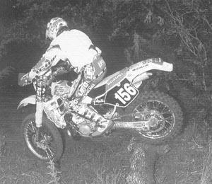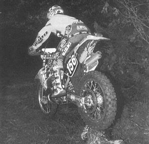 У Гая Купера есть совет на случай не слишком глубокой переправы: “Когда я знаю, что вода мелкая, а на дне нет камней, то предпочитаю сидеть, как можно выше подняв ноги, чтобы не промокнуть. Сырость является основной причиной волдырей, к тому же не слишком приятно ездить в мокрых мотоботах”. Есть у Купера и рекомендация для по-настоящему продвинутых гонщиков: “Если переправа узкая, лучшим вариантом может быть поднятое переднее колесо. Это уменьшит брызги, способные залить очки, и вам не надо волноваться по поводу столкновения с подводными камнями, которые могут привести к скручиванию вилки”. Преодоление водных преградЧерез бревна Упавшие деревья, особенно крупные, могут выглядеть весьма пугающе. Такие вещи, как дорожный просвет, сцепление и гравитация иногда создают впечатление, что преодолеть подобные препятствия невозможно. Но на случай, если другого пути нет, а поворачивать назад вы не хотите, существует несколько приемов. ![]() Это бревно, а если быть точным, два упавших друг на друга дерева, в высоту составляют порядка фута. Обычным способом преодолеть такое препятствие весьма затруднительно, удар в бревно передним колесом равносилен столкновению с невысокой кирпичной стеной. Подход с использованием вили хотя и сложен, имеет на своей стороне предпочтение лучших гонщиков. Он требует отличного расчета действий, хорошей оценки и немалых навыков. Идея заключается в том, чтобы подъехать к бревну на очень низкой скорости и перенести через него переднее колесо. На высокой скорости заднее колесо может отправить вас в полет при отбое амортизатора ![]() Поднимите переднее колесо ровно настолько, чтобы можно было перенести его через вершину бревна. Заметьте, что Купер сместился назад. Это позволяет держать перед разгруженным и поможет абсорбировать часть шока при ударе заднего колеса Опускание переднего колеса![]() Это то же самое бревно, но Купер заходит с другой стороны, чтобы проиллюстрировать, как надо опускать переднее колесо. Это должно быть сделано очень быстро, но тут есть хитрость, ибо вам будет необходима мощность, чтобы перебраться через бревно. Здесь может быть эффективно аккуратное управление газом, но большинство гонщиков предпочитает слегка выжимать сцепление, чтобы опустить колесо, после чего сцепление нужно мгновенно отпустить, дабы сохранить темп. В этот момент следует избегать прокручивания заднего колеса, которое может сделать сохранение контроля над аппаратом крайне трудным ![]() Когда переднее колесо касается поверхности, заднее уже должно находиться на вершине бревна. Обратите внимание, что Купер перенес вес на уровень заднего крыла. Это обеспечивает лучший зацеп и позволяет избежать падения Наиболее популярен подход с использованием вили на крайне малой скорости. Аккуратно работая газом и сцеплением, гонщики поднимают и переносят через бревно переднее колесо, следя за тем, чтобы при этом не застряло заднее. Кроме того, необходимо избежать проскальзывания заднего колеса, для наилучшего зацепа удерживая переднее колесо поднятым при касании задним поверхности бревна. Вили следует применять на низкой скорости, иначе у вас не получится достаточно высоко поднять переднее колесо, а если получится, то отбой заднего амортизатора отправит вас через руль. Вили требует также перпендикулярного подъезда к препя