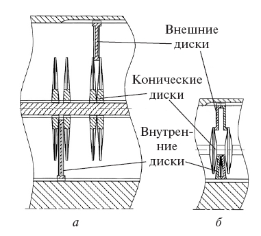 Проведем несложный эксперимент: поддомкратим автомобиль так, чтобы «вывесились» его ведущие колеса, и пустим двигатель работать на холостом ходу, поставив в коробке первую передачу. Отпустим сцепление и понаблюдаем за колесами. Они будут вращаться, причем с равной скоростью. А теперь попробуем замедлить вращение одного колеса, например, тормозя его чем-нибудь. Мы заметим, что второе колесо ускорит свое вращение. Остановив полностью первое колесо, мы ускорим вращение второго ровно вдвое. Почему же это происходит? Да потому, что колеса автомобиля связаны между собой особым механизмом, называемым дифференциалом. Многие из читателей, особенно автомобилисты, хорошо знают, как он устроен. Выпускается этот механизм миллионами, он общедоступен, иные автомобили имеют сразу несколько таких дифференциалов. Так вот, достаточно включить дифференциал в конструкцию вариатора, и мы сможем преобразовывать, как в описанном опыте с автомобилем, понижение частоты вращения одного вала в повышение частоты вращения другого. Если подключить этот дифференциал в тот момент, когда вариатор дойдет до своего минимального передаточного отношения, допустим, 1,3, то частоты вращения входного и выходного валов дифференциала станут одинаковыми. Но стоит нам увеличить передаточное отношение вариатора, как выходной вал дифференциала начнет убыстряться, соединяясь с ведущими колесами автомобиля, хотя в начале движения с ведущими колесами были связаны вал вариатора, или, что одно и то же, входной вал дифференциала. Когда частоты вращения валов дифференциала станут одинаковыми, то безразлично, какой из них окажется подключенным к колесам автомобиля, можно даже соединить с ними сразу оба этих вала. Это очень ценно, так как не будет разрыва в трансмиссии, что происходит, например, при переключении передач автомобиля. Понижение скорости автомобиля осуществляется аналогично, только в обратном порядке. Конечно же, дифференциал я применил здесь не совсем автомобильный, без присущих ему конических зубчаток, но принцип остался тот же. В результате диапазон регулирования увеличился до 20—25, и почему это произошло – очевидно. Ведь используются оба рабочих хода управления вариатором – и на понижение, и на повышение передаточного отношения, а идут оба этих хода или только на понижение, или только на повышение данного отношения. Но, казалось бы, произошло невероятное – кроме диапазона повысился и КПД устройства! Во всех пособиях и учебниках, где речь идет о вариаторах, написано, что КПД с увеличением диапазона падает, и наоборот. В чем же дело, почему здесь законы механики не срабатывают? Нет, они срабатывают, но только в нужном нам направлении. Давайте проследим, что же происходит, когда мы подключаем дифференциал и начинаем повышать передаточное отношение вариатора. Выходной вал дифференциала, соединенный с колесами, вращается все быстрее, а ведь вал вариатора замедляется, через него проходит все меньшая мощность, меньше и потерь энергии. И все большая мощность проходит на колеса непосредственно от двигателя или маховика, минуя вариатор, а следовательно, уменьшаются и потери. Если бы вариатор остановился совсем, КПД всего устройства был бы равен практически единице, но вариатор все-таки вращается, хотя и еле-еле, вот и КПД не единица, а 0,99! Подсчет показывает, что 