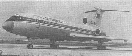 "154" (Ту-154) Среднемагиапральиый пассажирский самолет, серийный Первый опытный самолет Ту-154. Заводские испытания, 1968 г. Знания и опыт, приобретенные в послевоенный период при разработке, испытаниях, доводке и эксплуатации первых реактивных пассажирских самолетов, позволили коллективу ОКБ А.Н.Туполева в начале 60-х годов приступить к работам над среднемагист- ральным пассажирским самолетом следующего поколения. Первые пассажирские самолеты с газотурбинными двигателями Ту-104 и Ту-114 родились на базе боевых самолетов Ту-16 и Ту-95, Ту-124 и его развитие Ту-134 по многим основным техническим решениям были все-таки удачным развитием идей заложенных в туполевский реактивный пассажирский первенец. В отличие от них программа создания нового сред- немагистрального пассажирского самолета, получившего обозначение Ту-154, стала для коллектива туполевцев первым пассажирским самолетом, не имевшим даже в "праотцах" военного прототипа. Самолет Ту-154 с самого начала разрабатывался по канонам проектирования пассажирской машины с предварительным изучением предполагаемых потребностей на подобный самолет со стороны отечественного гражданского воздушного флота и требований зарубежных возможных покупателей на ближайшие 15 – 20 лет, до начала 80-х годов. Изначально в проекте самолета предполагалось внедрить большое количество технических новаций, позволявших построить самолет, существенно превосходящий по многим параметрам, а также по комплексным показателям, сразу несколько типов отечественных пассажирских самолетов и поэтому способного заменить их всех в эксплуатации. Одновременно ставилась задача создать самолет не уступающий по своим параметрам проектирующийся в США на фирме Боинг самолет того же класса "Модель-727". В начале 60-х годов на воздушных линиях Аэрофлота средней протяженности от 1500 до 3500 км, прочно обосновались великолепно себя зарекомендовавшие себя самолеты Ту-104, Ил-18 и Ан-10. Из них Ту-104 и его модификации обладали самой большой крейсерской скоростью и обеспечивали наилучший комфорт. Ан-10 имел наилучшие взлетно-посадочные характеристики. Ил-18 имел наибольшие дальности полета и наилучшие экономические показатели. Отечественный гражданский воздушный флот имел в своем распоряжение три абсолютно разных пассажирских самолета одного класса, что приводило к сложностям в обеспечении нормального процесса технической эксплуатации парка самолетов конструктивно значительно отличавшихся между собой. Поэтому именно в этот период на повестку дня встал вопрос о замене трех разнотипных самолетов, эксплуатировавшихся практически на одних и тех же авиалиниях, одним. При этом выдвигалось условие: новая машина должна была вобрать в себя лучшие качества своих предшественников, с учетом некоторых новых нормативных требований к пассажирским самолетам, которые как раз начали вводить в период создания Ту-154, в частности более жесткие требования к взлетно-посадочным характеристикам. Мыслилось, что новый самолет будет создаваться с учетом последних достижений отечественного и мирового самолетостроения. Предварительные работы по самолету заняли около 2-х лет и в ходе аванпроектов и эскизного проектирования самолет претерпел ряд изменений, сохраняя основные идеи, заложенные в первоначальный проект. Работы в ОКБ по поиску наиболее оптимал