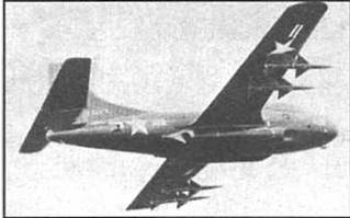 Развитие авиации корабельного базирования после второй мировой войны США Истребители В Соединенных Штатах еще до окончания Второй мировой войны широким фронтом развернулись работы по созданию реактивных истребителей, в том числе и палубных. Первые "джеты" по многим параметрам уступали поршневым. Для морских самолетов они имели недостаточную дальность и продолжительность полета, неудовлетворительные взлетно-посадочные характеристики. С высоты исторического опыта легко судить противников реактивной палубной авиации, в конкретных же условиях конца 40-х годов решение развивать параллельно поршневые и реактивные самолеты выглядит вполне оправданным. Поршневые "Хэллкеты", "Корсары" и "Биркэты" оставались в составе палубных авиагрупп ВМС США вплоть до 50-х годов. К примеру, в составе авиагруппы авианосца "Франклин Д. Рузвельт", совершившего в августе-октябре 1946 г. поход в восточное Средиземноморье, имелось 65 "Корсаров" и восемь "Хэллкэтов". Разработка палубного истребителя нового поколения началась на фирме Чэнс-Воут в 1938 г. Через несколько лет напряженной конструкторской работы и мучительной доводки прототипов появился продукт мирового уровня - истребитель F4U "Корсар". Боевая служба "Корсаров" началась в 1942 г., к концу войны элегантный самолет с крылом типа "обратная чайка" знал весь мир. Совершенствование одного из лучших палубных истребителей продолжилось после окончания войны. В 1946 г. в производство пошла модификация F4U-5, в отличие от большинства более ранних "Корсаров" на "пятерки" вместо шести крупнокалиберных пулеметов ставились четыре 20-мм пушки, были улучшены высотные характеристики самолета. Истребитель F4U-5 выпускался в нескольких вариантах: собственно F4U-5 - дневной истребитель; F4U-5N/NL - ночной перехватчик, оснащенный РЛС AN/APS-19 (AN/APS-6); F4U-5P - фоторазведчик. Всего с 1946 г. по 1951 г. было построено 568 "пятерок" всех вариантов. В период войны в Корее редкий американский авианосец не имел на своем борту "Корсаров". На неуклюжем с виду, но обладавшим прекрасными характеристиками "Хэллкэте" воевали самые результативные пилоты ВМС США. Боевая карьера "Хэллкэта"началась в 1943 г., позже чем у "Корсара". Последняя модель "Хэллкэта" - F6F-5 - была запущена в серию в 1944 г. Практически сразу же после капитуляции Японии "Хэллкэты" сняли с вооружения палубной авиации. Логическим завершением линии палубных "котов" фирмы Грумман - "Уайлдкэта" и "Хэллкэта" - стал "Биркэт". Проектирование преемника "Хэллкэта" началось в 1943 г. Первый полет прототип "Биркэта" совершил в июле 1944 г., но в войне самолет участия принять не успел. Серийное производство варианта F8F-1 началось в феврале 1945 г., в ноябре начался выпуск пушечной модификации F8F-1B. В январе 1948 г. со сборочной линии начали сходить оснащенные РЛС AN/APN-1 ночные перехватчики F8F-2 и фоторазведчики F8F-2P. FJ-1 «Фьюри» FJ-3 «Фьюри» «Кугар» F3D «Скайнайт» Серийный выпуск "Биркэтов" прекратили в 1949 г., всего изготовлено порядка 1200 самолетов всех модификаций. Самолет Райан FR "Файрболл" с комбинированной силовой установкой из поршневого и турбореактивного двигателя совершил первый полет в июне 1944 г. Истребитель не оправдал возлагавшихся на него надежд: по максимальной скорости с обоими работающими моторами он едва ли не уступал "Биркету". Учитывая, что наличие ТРД позволяло резко улучшить разгонные характеристики машины, флот все ж