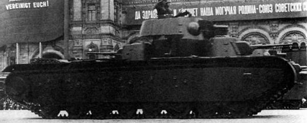 Тяжелый танк Т-35 Единственный в мире серийный пятибашенный танк. Предназначался для качественного усиления общевойсковых соединений при прорыве особо сильных и заблаговременно укрепленных оборонительных полос противника Разрабатывался в КБ АВО-5 завода "Большевик", а затем в ОКМО. Принят на вооружение 11 августа 1933 г. Серийное производство осуществлялось на заводе №183 (ХПЗ имени Коминтерна). С октября 1933-го по июнь 1939 г. изготовлена 61 единица. КОНСТРУКЦИЯ И МОДИФИКАЦИИ Т-35А – пять башен цилиндрической формы расположены в двух ярусах. В трех башнях – пушки и пулеметы, в двух – по одному пулемету. Корпус клепано-сварной конструкции. С 1937 г. увеличена толщина брони лобовых, бортовых и кормовых листов корпуса и башен до 25 мм. Зенитный пулемет на люке наводчика. Мощность двигателя 580 л.с. Боевая масса возросла до 52 т. Изготовлено 55 единиц. Т-35 обр. 1939 г. – все башни конической формы. Бронирование: лоб корпуса – 70 мм, подбашенная коробка главной башни – 25 мм, башни макс. – 25 мм. На части машин – пулемет в корме главной башни. Увеличена толщина брони и емкость топливных баков, усилена подвеска. Боевая масса 54 т. Изготовлено 6 единиц. Первые серийные машины Т-35 поступили в 5-й тяжелый танковый полк РГК в Харькове. В 1935 г. полк развернули в 5-ю отдельную тяжелую танковую бригаду, которая в марте 1939 г. была передана в состав КВО и переброшена в г.Житомир. Вскоре она сменила номер и стала 14-й тяжелой танковой бригадой. ![]() Т-35А 5-й тяжелой танковой бригады на учениях. Район Харькова, лето 1935 г. ![]() Тяжелый танк Т-35 – символ мощи Красной Армии в предвоенные годы, Москва, Красная площадь, 1934 г. ![]() ![]() Тяжелый танк Т-35 обр. 1939 г. с коническими башнями проходит по Красной площади. Москва, 7 ноября 1940 г. ![]() ![]() Подбитые и брошенные тяжелые танки Т-35 34-й танковой дивизии. Юго-Западный фронт, 1941 г, (слева и вверху) Уже к этому времени боевая ценность этих машин стала сомнительной. Единственное, где они проявили себя в полной мере, так это участие в военных парадах. Начиная с 1933 г. и вплоть до начала Великой Отечественной войны Т-35 демонстрировали мощь Красной Армии на парадах в Москве и Киеве. В 1940 г. при формировании механизированных корпусов 48 танков Т-35 получили 67-й и 68-й танковые полки 34-й танковой дивизии 8-го механизированного корпуса (КОВО). Остальные танки находились в различных военно-учебных заведениях и в ремонте. Боевая карьера Т-35 оказалась очень короткой. 21 июня 1941 г. в 24.00 в полках 34-й танковой дивизии, дислоцированных в Грудеке-Ягеллонском юго-западнее Львова, объявили тревогу. Машины заправили и вывели на полигон, где началась загрузка боекомплекта. В ходе последующих боевых действий все Т-35 8-го мехкорпуса были потеряны, причем большинство по техническим причинам. Погибли в бою считанные танки. В боях под Москвой в составе танкового полка ВАММ имени Сталина принимали участие два танка Т-35. В это же время еще два Т-35 находились в распоряжении Казанских бронетанковых курсов усовершенствования технического состава. ![]() Боевые машины танкового полка Военной академии механизации и моторизации им.Сталина. На переднем плане – Т-35А. Москва, ноябрь 1941 г. ТАКТИКО-ТЕХНИЧЕСКИЕ ХАРАКТЕРИСТИКИ ТАНКА Т-35А БОЕВАЯ МАССА, т: 50. ЭКИПАЖ, чел.: 11. ГАБАРИТНЫЕ РАЗМЕРЫ, мм: длина – 9720, ширина – 3200, высота – 3430. клиренс – 530. ВООРУЖЕНИЕ: 1 пушка КТ-28 обр.1927/32 г. калибра 76 мм. 2 пушки 20К обр.1932 г. 