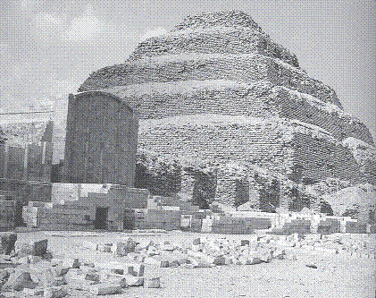 Пирамида Джосера сооружалась в три этапа путем составления мастаб одну на другую Есть и другое отличие египетских пирамид от меозоамериканских. В подавляющем большинстве случаев в центре каждой стороны американских пирамид строилась широкая лестница, которая вела на самый верх пирамиды, где сооружалось особого рода навершие, в котором и мог располагаться правитель. Египетские пирамиды — без лестниц и без тронов на вершине. Они в основном островерхие (хотя сегодня большинство вершин снесено временем), и несложно предположить, что египетские архитекторы никогда не планировали, что кто-то будет взбираться на вершину пирамиды. Очевидно, что хотя пирамиды двух континентов на первый взгляд похожи между собой, все же функции у них были разными.
